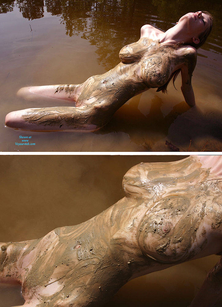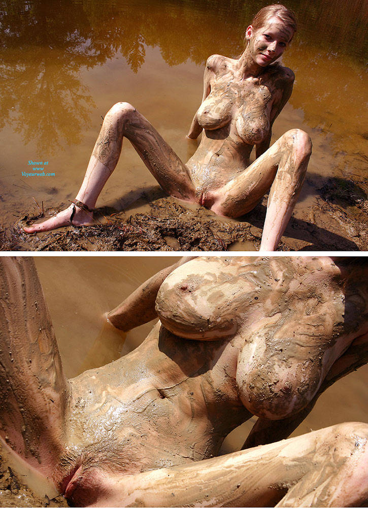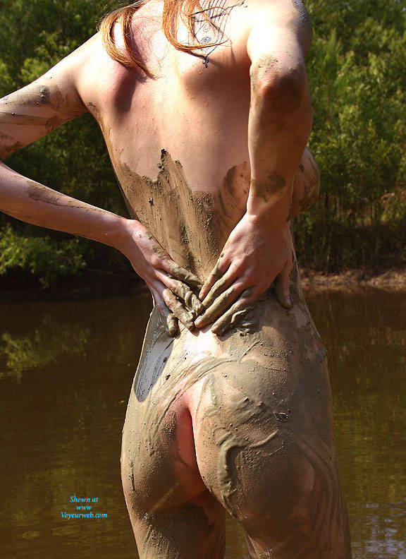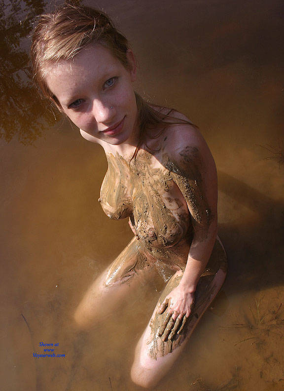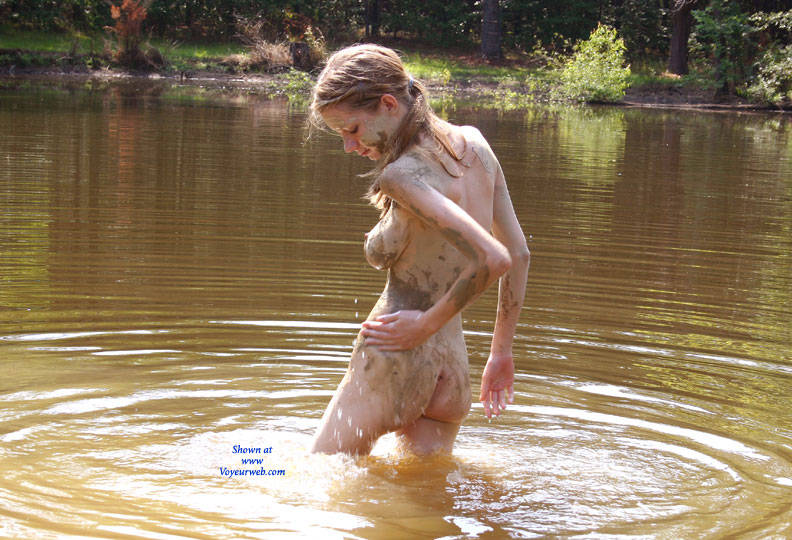 She loved to take a walk down by the pond through the woods in the afternoon while on vacation and one of the days she started playing in the mud along the shoreline and eventually covered herself from head to toe.