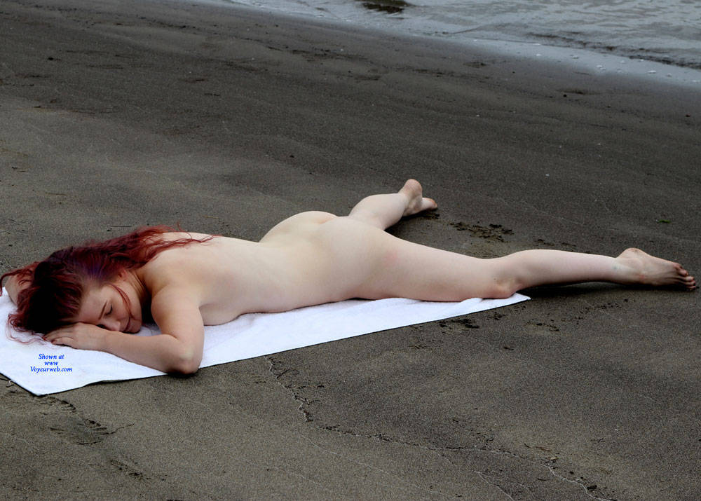 Although it was late in the season, Beth was eager for her first adventure to the local beach... nude. Although it was a quiet day, she managed to convince a volunteer to massage her from head to toe with the baby oil that she brought along - Beth can be pretty convincing when she wants to be.