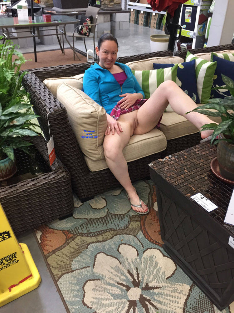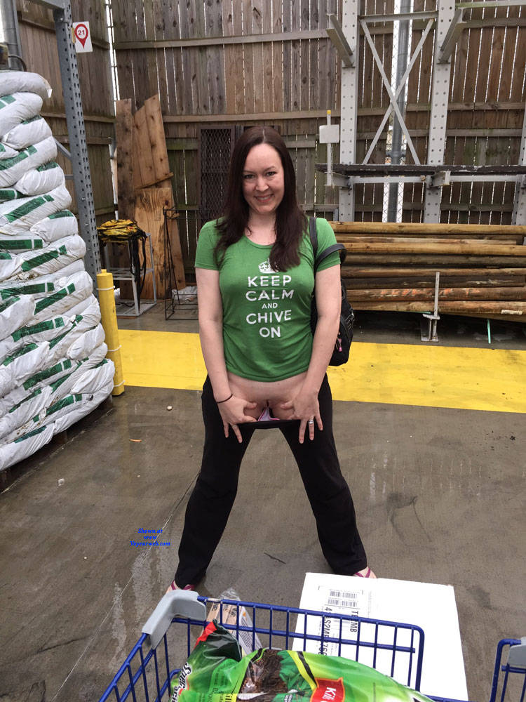 Pantieless Wives Big Tits Brunette Public Exhibitionist Flashing Public Place Shaved Amateur