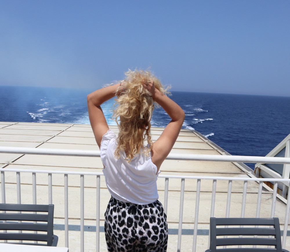 I enjoy to be exposed in public and thinking that maybe someone is looking my sexy boobs. The ship was the right place to get rid of my T shirt and showing my hot nipples. I want you to suck them and make them red and hard!!
